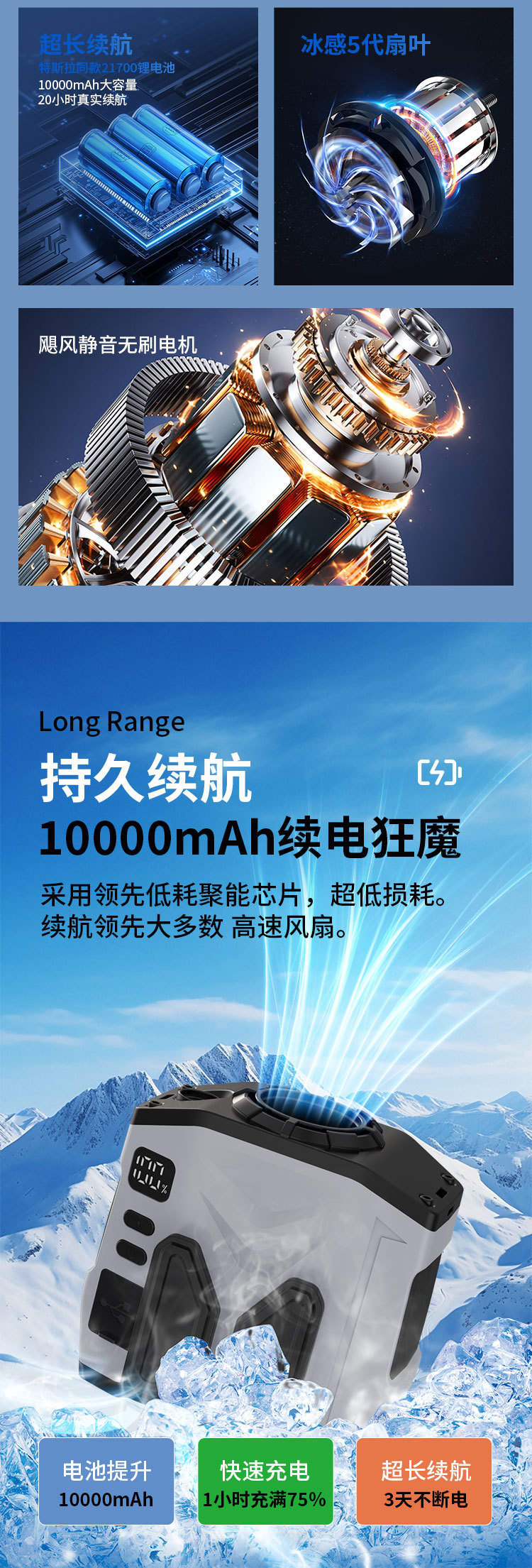 2. بطارية ذات سعة كبيرة تبلغ 8000 مللي أمبير توفر شحنًا لمدة 4.5 ساعة ووقت تشغيل من 6 إلى 25 ساعة للاستخدام الممتد.