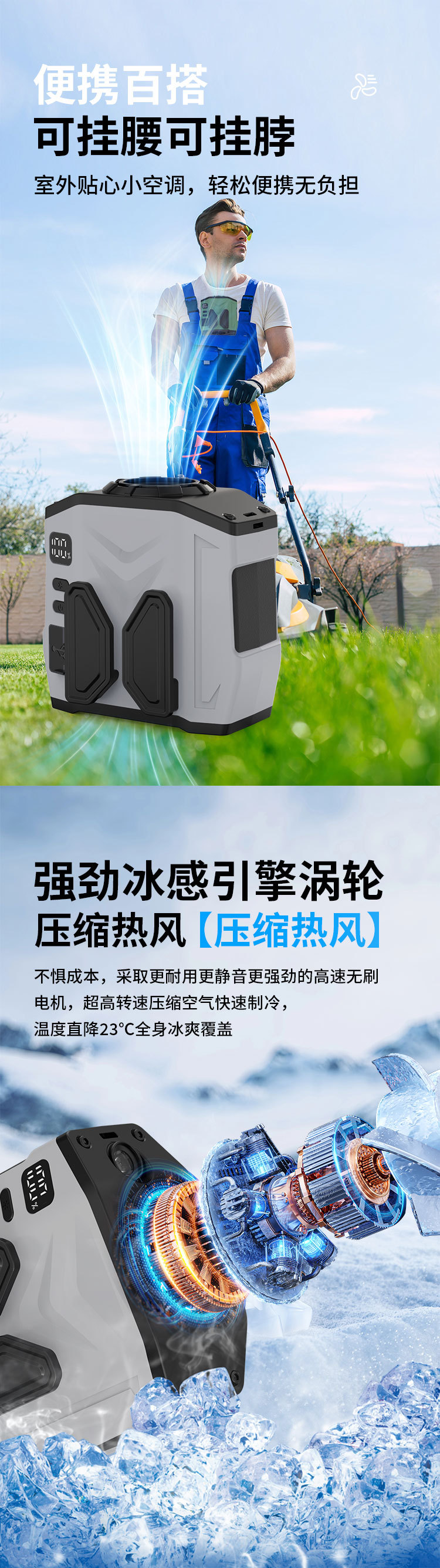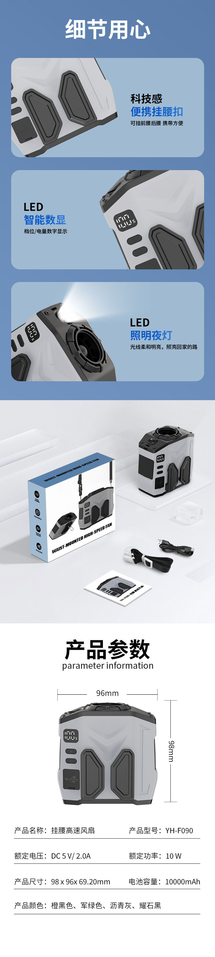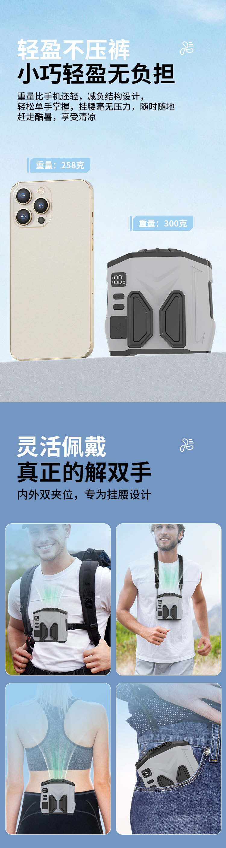 4. أوضاع استخدام متعددة: التعليق على الخصر، التعليق على الرقبة، وضع الجهاز على سطح المكتب، والتشغيل اليدوي.